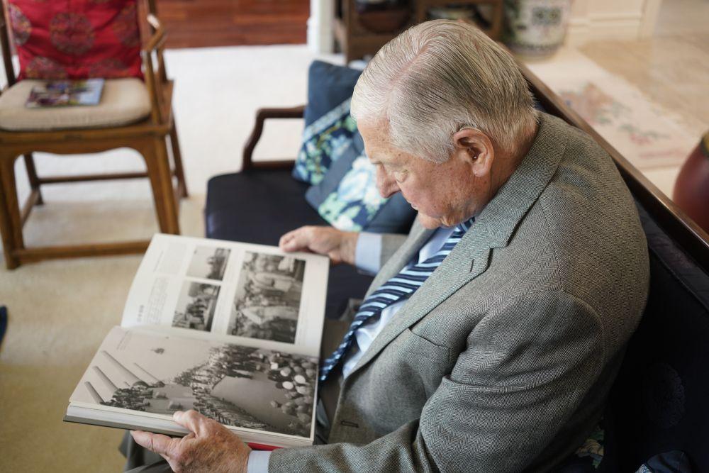在位于美国旧金山湾区的家中,耄耋之年的伊斯特布鲁克接受新华社记者专访时,特意翻出了一张日本在“密苏里”号战列舰上签署无条件投降书的老照片,用手指着照片中甲板上军官站立的一侧,“史迪威就在这里”。