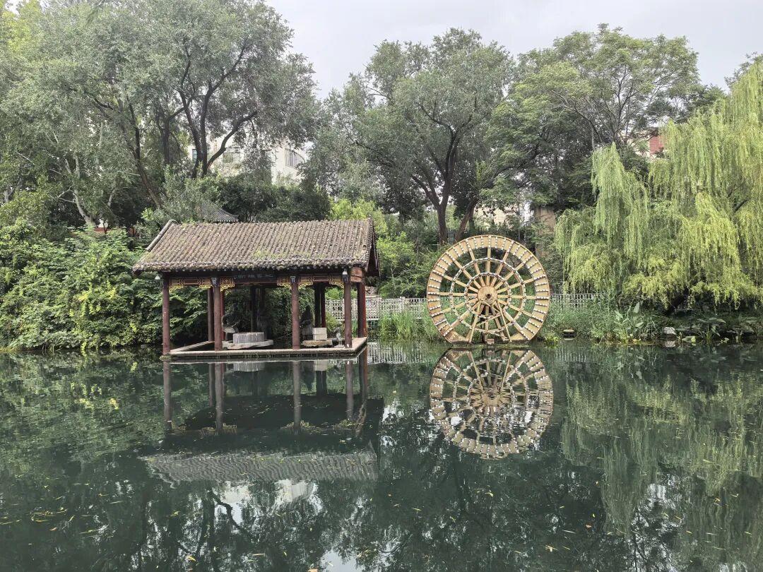 雨后的护城河烟霞缭绕,清新温润。护城湖畔多垂柳,万条丝绦真的如青春少女的飘飘长发,从遒劲的树干上一直垂到水面。从青龙桥往北的一段水面很宽展,两面怪石嶙峋,石径的小路崎岖蜿蜒。没有路途穷尽之时,绿树掩映之间总有一条曲径连通着四通八达的路网。或者通向了明湖东路,或者连接着从青龙桥往北的小桥流水。河面上正有两艘画舫慢慢地驶过,游人指点着,拾趣着两岸的苍翠和青绿。有的伸出手拂过那些垂在水面的细柳,随着水波的划痕,带着缱绻和留恋,一条向着北边的明湖,一条向着南边的白石桥缓缓而去。那个巨型的风车倒映在绿色的水中,在转动中卷起的水花翻卷着河水,也一圈一圈转动着时光和岁月。所以,每次经过那里,看到那个风车都很有年代感。