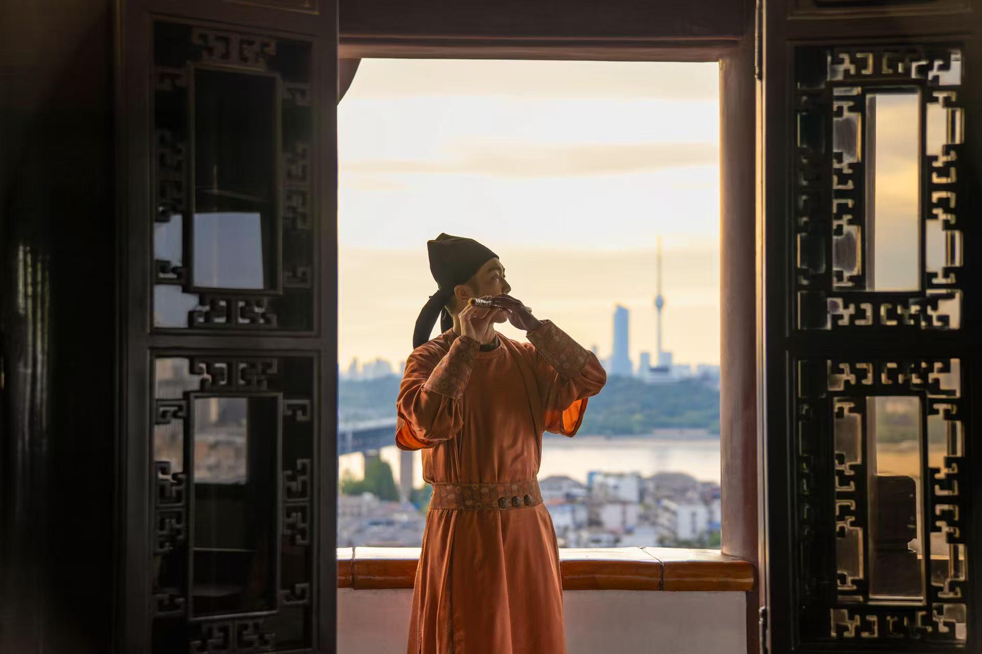 超级文旅日八大沉浸式场景之“一起戏遇知音”,黄鹤雅集闻笛探江,入诗入画。