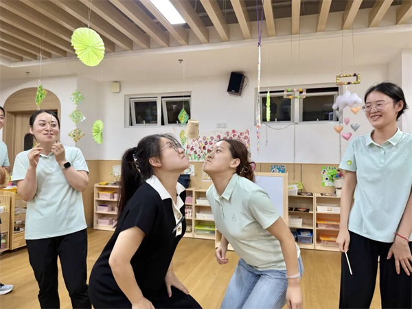 海澜路幼儿园以“感恩有你,快乐同行”为主题开展教师节活动,“你画我猜”“写字接力赛”“猜拳过河”等游戏中,教师们组队比拼,笑声不断。简单的游戏拉近了老师之间的距离,也让教师们在忙碌中收获轻松与喜悦。幼儿园通过活动表扬了一群人,拉近了一群人,引领了一群人。