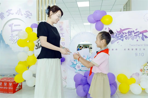 崇文小学以“微光成炬 闪耀师者之路”为主题,开展教师节系列活动。学校精心整合资源,将定制纪念礼品与社会爱心人士捐赠物资结合,为全体教师送上饱含心意的双份祝福。“鲜花+蛋糕+定制礼”的节日惊喜,让教师们在收到祝福的瞬间,切实感受到来自学校与社会的双重关怀,也让尊师重教的氛围在校园中愈发浓厚,为这个教师节增添了别样温情。
