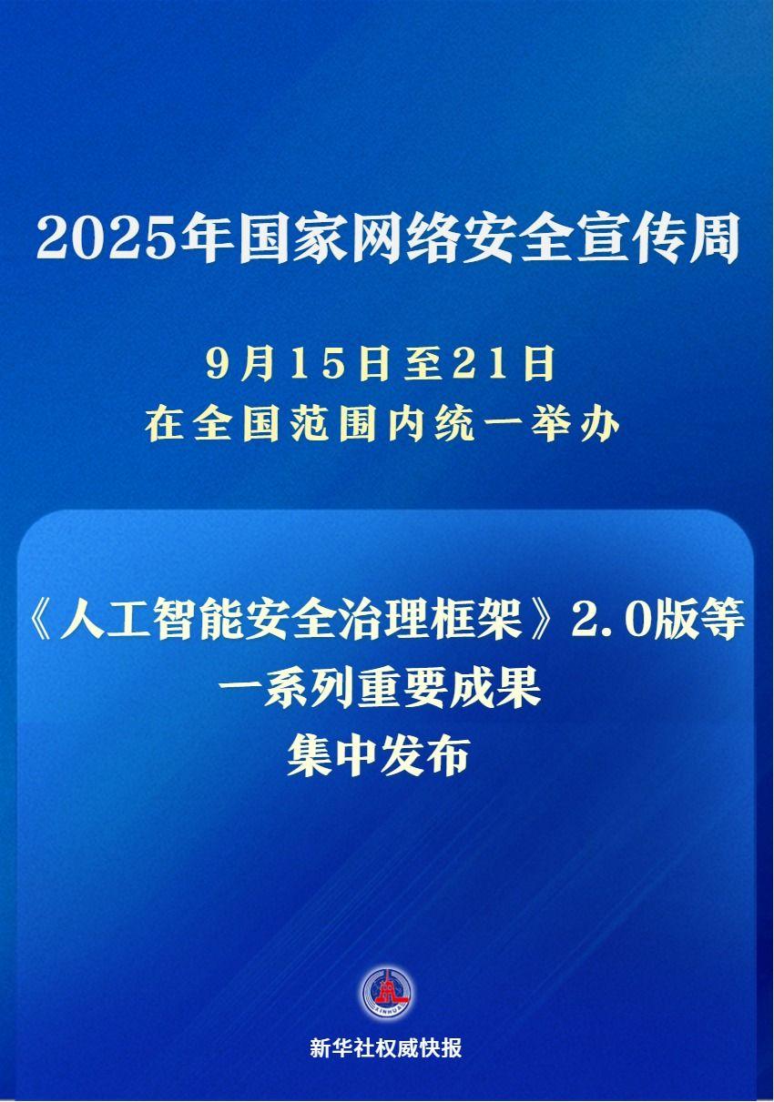 2025年国家网络安全宣传周9月15日至21日在全国范围内统一举办,开幕式等重要活动在云南昆明举行。在15日举行的网络安全技术高峰论坛主论坛上,《人工智能安全治理框架》2.0版、《政务大模型应用安全规范》、2025年人工智能技术赋能网络安全应用测试活动结果等重要成果集中发布。