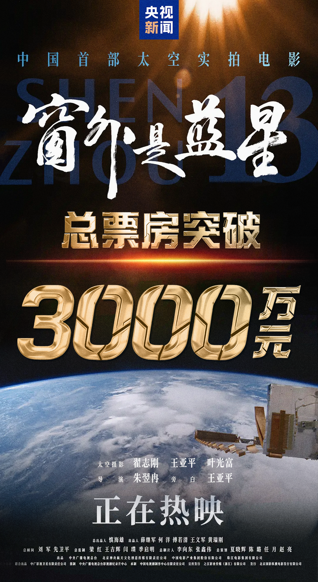 据网络平台数据,截至9月17日20时,中国首部太空实拍电影《窗外是蓝星》总票房已突破3000万元。这是首部挂总台电影台标并登陆全国院线的电影,自9月5日全国公映以来,迅速掀起观影热潮。