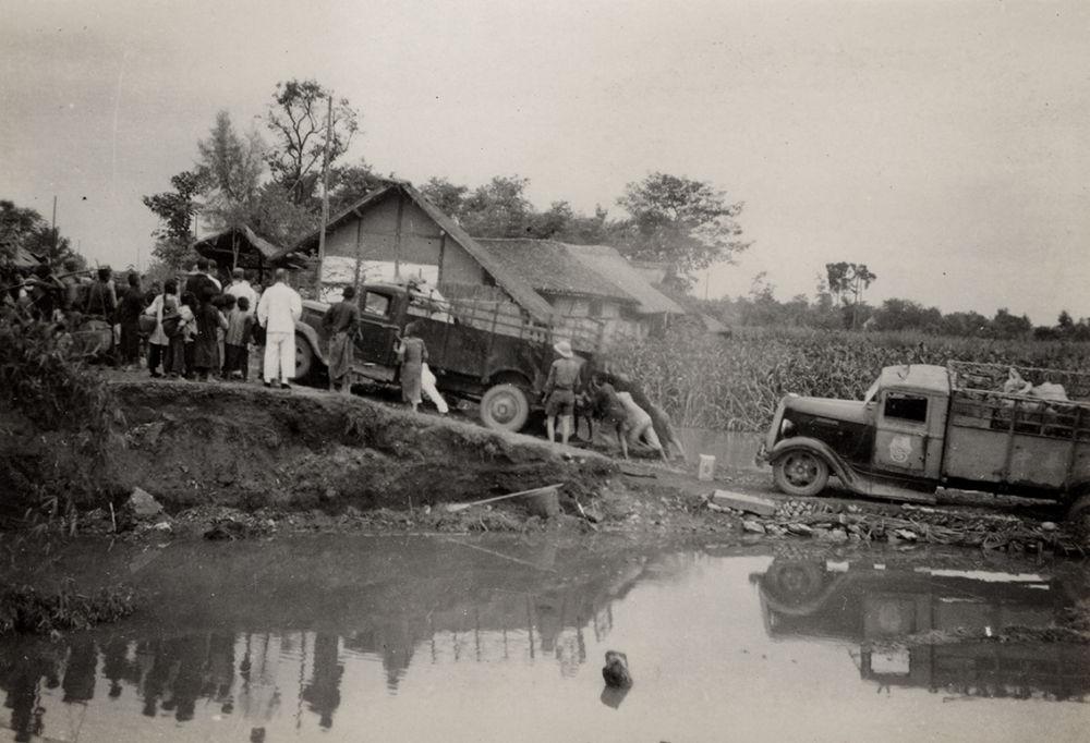 1937年,第三批南迁四川的文物在川陕公路运输的艰苦状况(资料照片)。新华社发