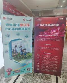 深耕营业厅主阵地。全市各营业网点利用LED屏、电视等载体,高频次播放宣传周主题内容及反诈警示视频,对进厅用户进行即时提醒。厅内显著位置张贴海报、摆放展架,工作人员主动发放“反诈提示卡”,并现场讲解电话卡合规使用规范及防范诈骗要点。
