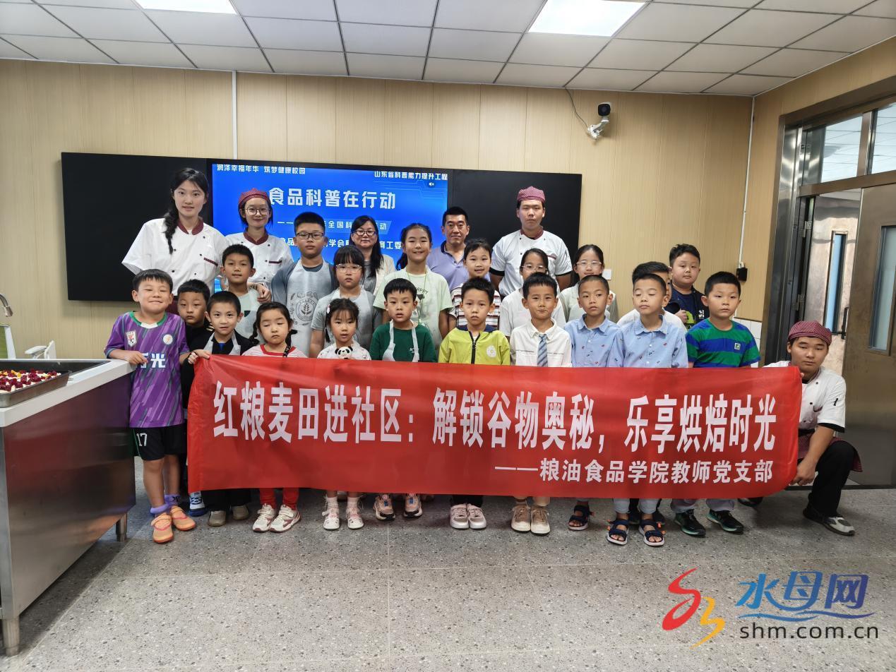 水母网讯 9月20日上午,山东商务职业学院粮油食品学院教师党支部以“红粮麦田”党建品牌为抓手,联合烟台大学食品学科带头人彭新颜教授、烟台高新区蓝海社区,共同开展“红粮麦田”社区青少年粮食认知实践活动。20多名来自蓝海社区的青少年朋友们走进学院粮食文化教育基地,沉浸式体验粮食科技、营养知识,培养节粮爱粮意识,让“红粮麦田”爱粮护粮的种子在青少年心中生根发芽。