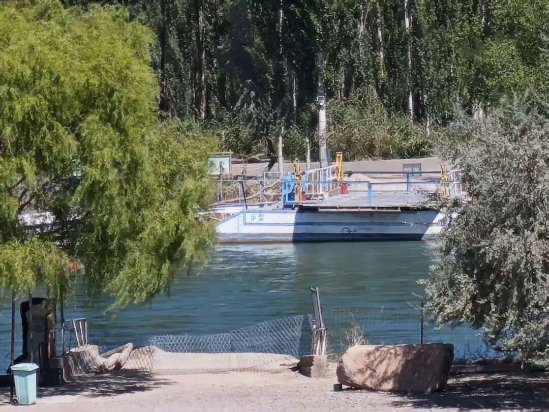“看到了吧,那儿就是野马渡口遗址,它见证了伊犁河交通的变迁史。”循着刘军大哥手指方向,我侧头望去,几百米处的一片树林中,隐约可见一汪水滩和一方踏板,如果不是专门提示,普通的样子还真看不出有什么特别之处。