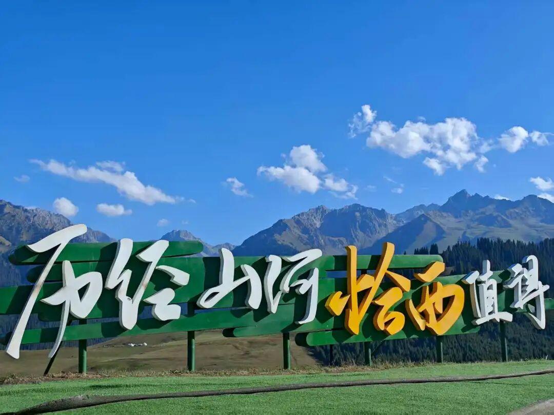 基本和我一般高的巨幅长条“LOGO”,以其青翠的绿、圣洁的白、纯净的黄,矗立于观景台中央,“历经山河 恰西值得”八个行书大字格外醒目。它诠释的不仅是自然之美,心情之美,更是跨越地域与年代的人性之美,文化之美。