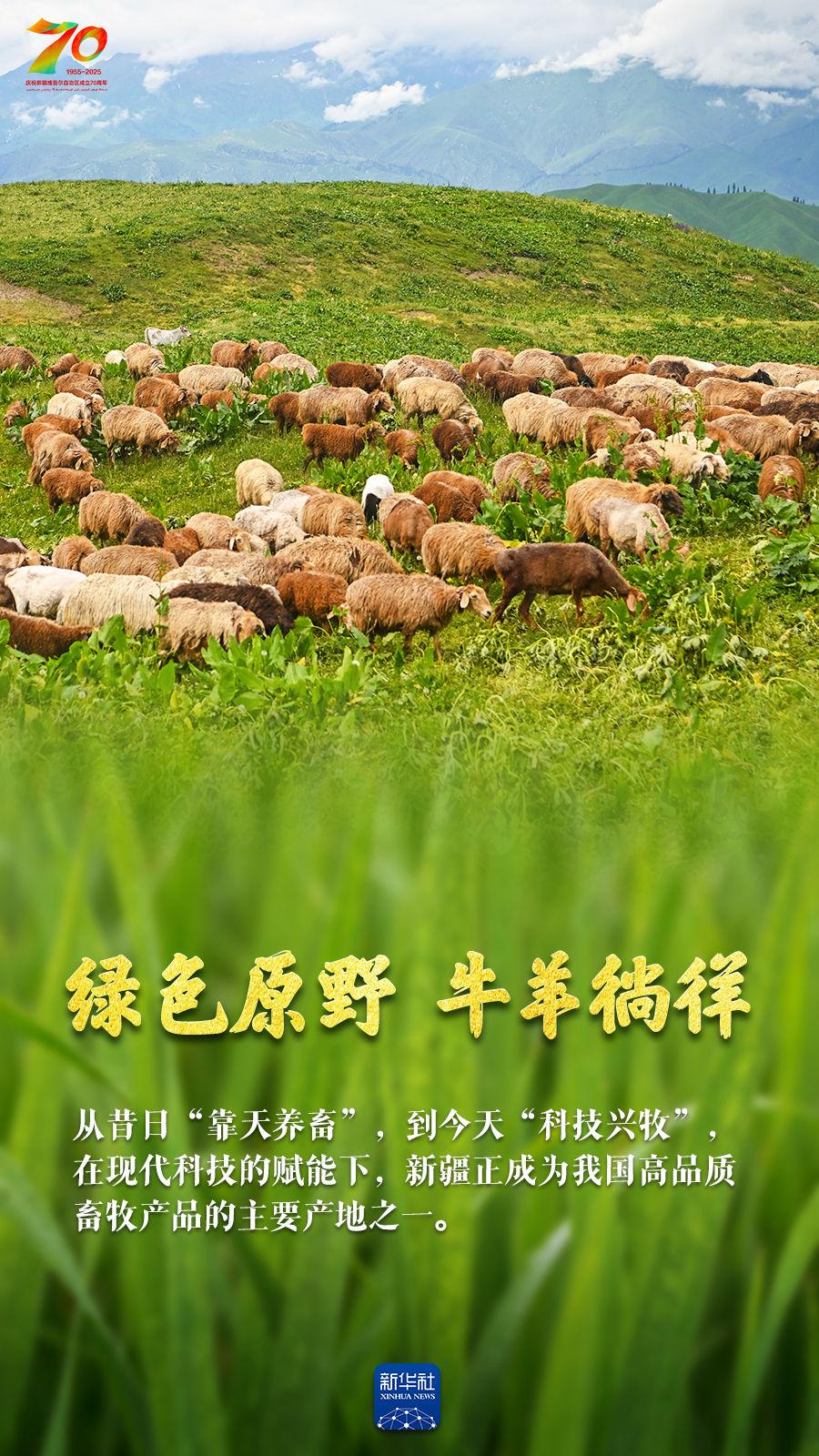 正是丰收好光景,天山南北仓廪实。今年是新疆维吾尔自治区成立70周年,70年来新疆农业生产发生了翻天覆地的变化:人均口粮从不足200公斤到粮食单产跃居全国第一;棉花占全国总产量的比重超过九成;离海最远的新疆成为多种海鲜出口地;皮亚曼的石榴、吐鲁番的葡萄、库尔勒的香梨、阿克苏的苹果……更是甜醉了全国人民的味蕾。让我们跟随这组海报,领略丰收里的大美新疆。