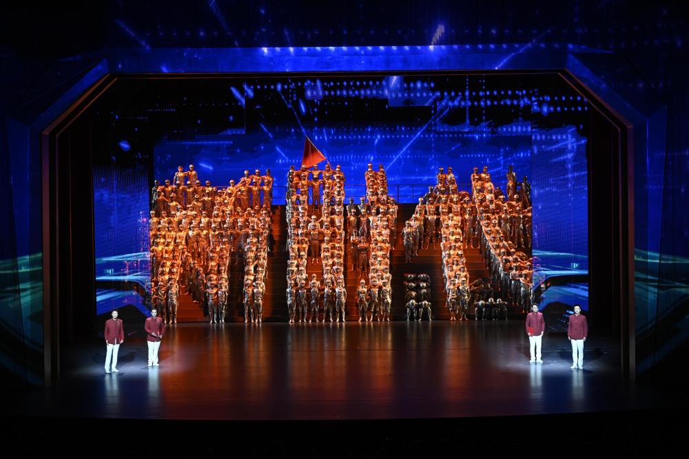 24日的文艺晚会《美丽新疆》中,创意诗舞画《时代交响》,以绚丽变幻的声光电,生动描绘天山南北的日新月异。