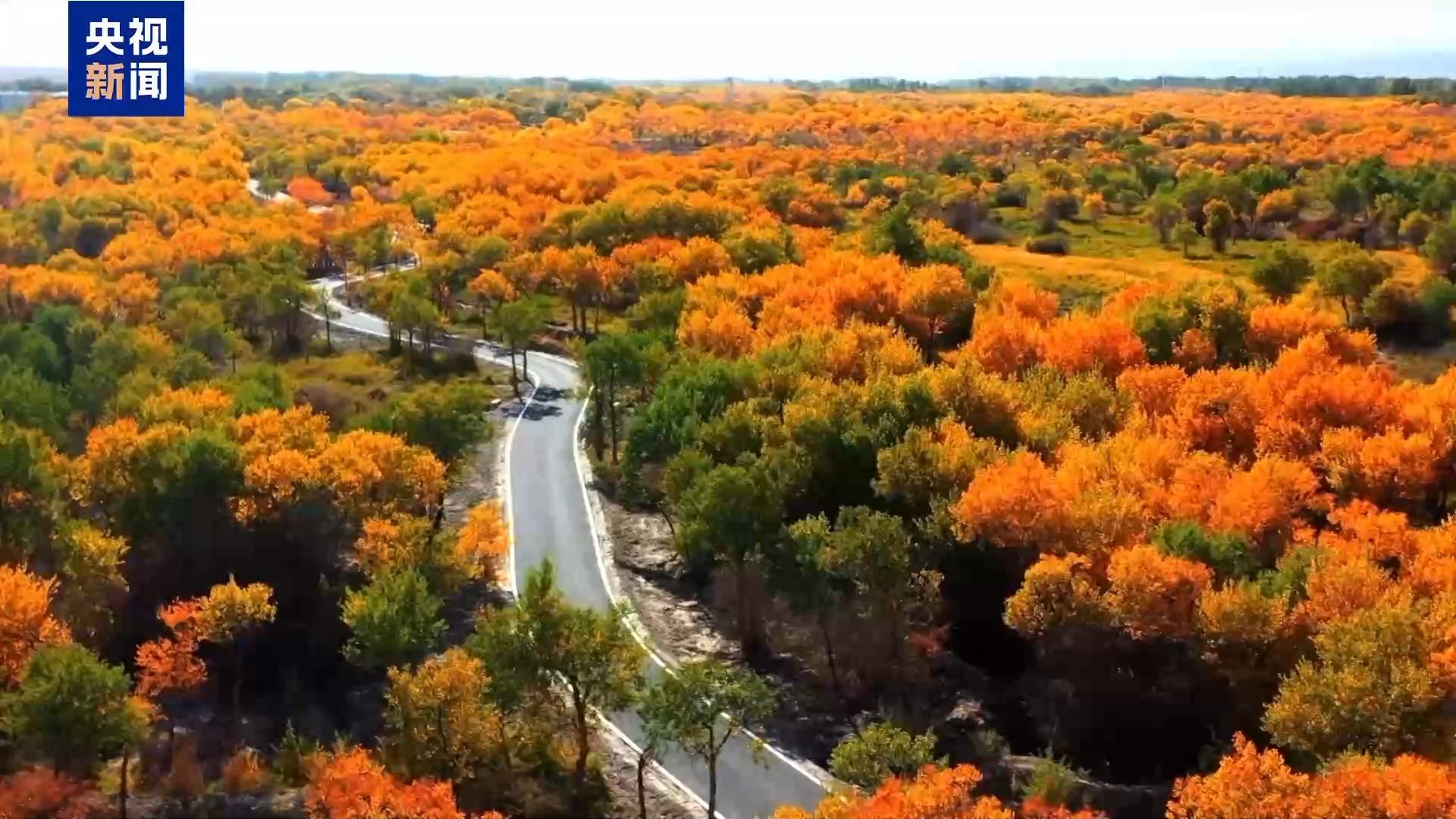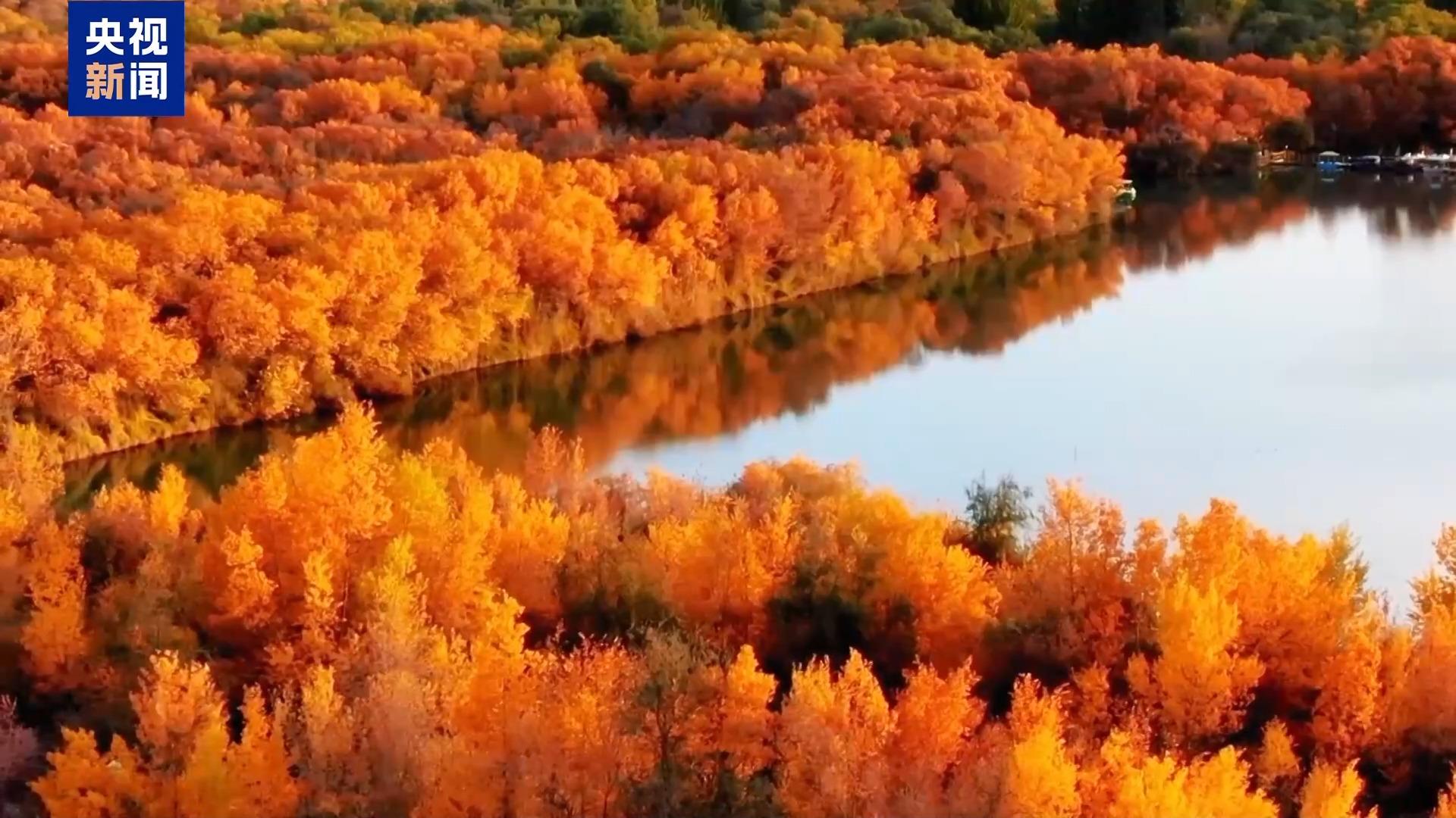 新疆:秋日湖林相映成画 大漠鎏金映碧天