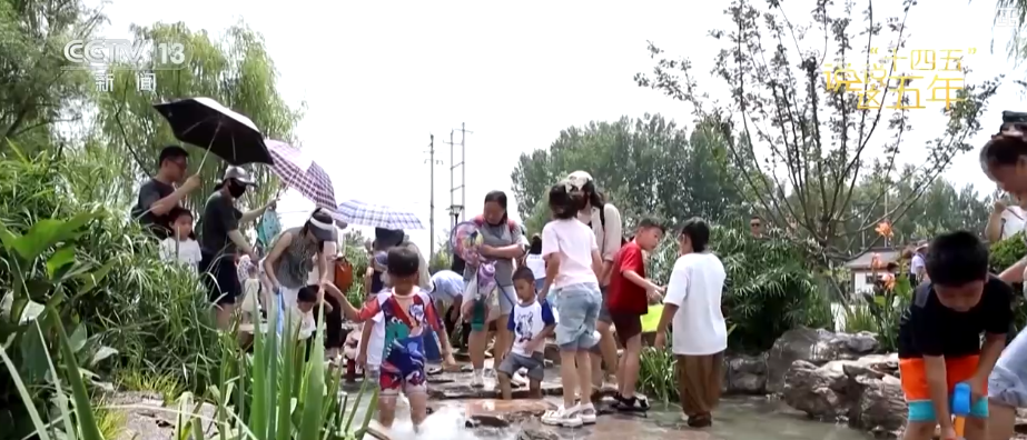 游客黄女士说,山更青了、水更美了,祖国处处的山水都很美。周边的口袋公园特别多,方便他们锻炼身体对老年人很有帮助。