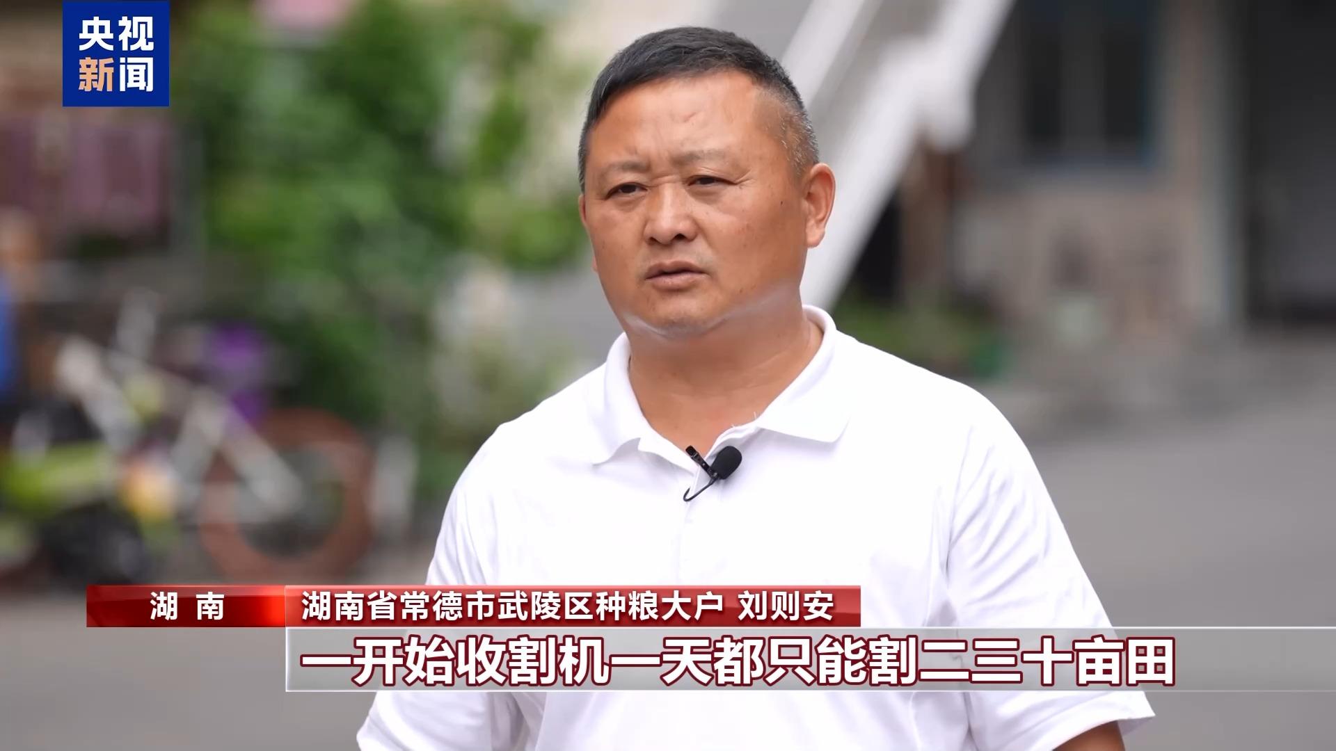 湖南省常德市武陵区种粮大户 刘则安:一开始收割机一天只能割二三十亩田,现在的收割机能够割六七十亩都没问题。
