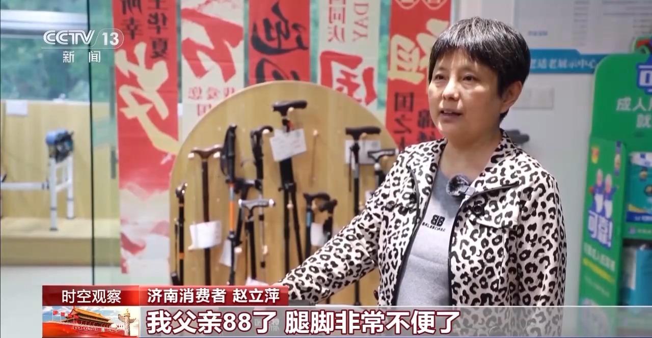 济南消费者 赵立萍:我父亲88了,腿脚非常不便了,今天过来想买个轮椅。一款原价5000多,国家补贴30%,算了算大概3000多,挺合适的。