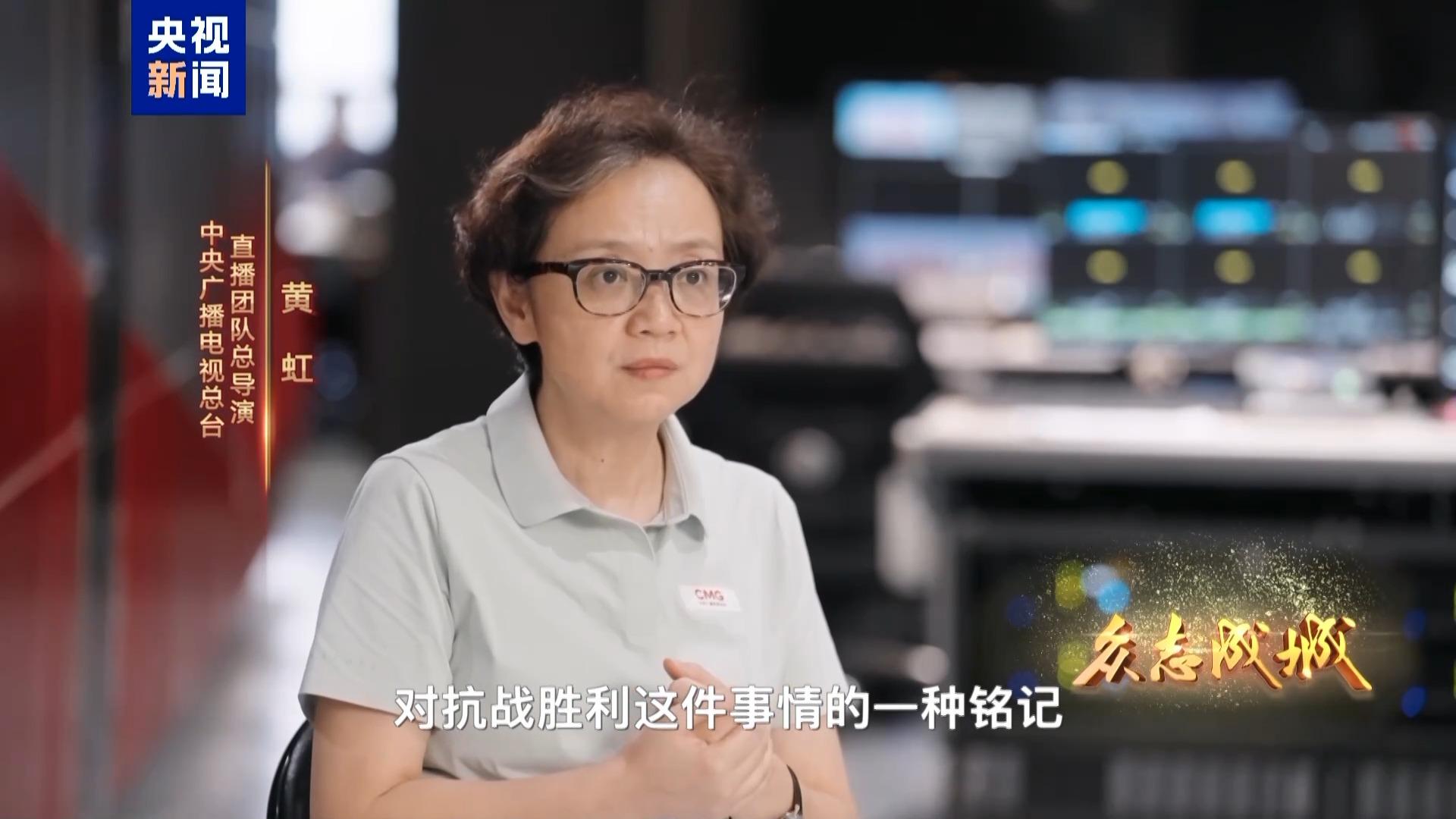 中央广播电视总台直播团队总导演 黄虹:我们更多地希望能够通过这种庄严隆重、大气豪迈的镜头表达,来表达出中国人对抗战胜利这件事情的一种铭记。这一次这个大会现场的一个专门的设计,就是一个“众”字。不仅在我们的团队里面体现,也不仅在大会现场的设计里体现,其实是在整个直播当中都能够体现中国人有一种众志成城、团结一心的精气神。