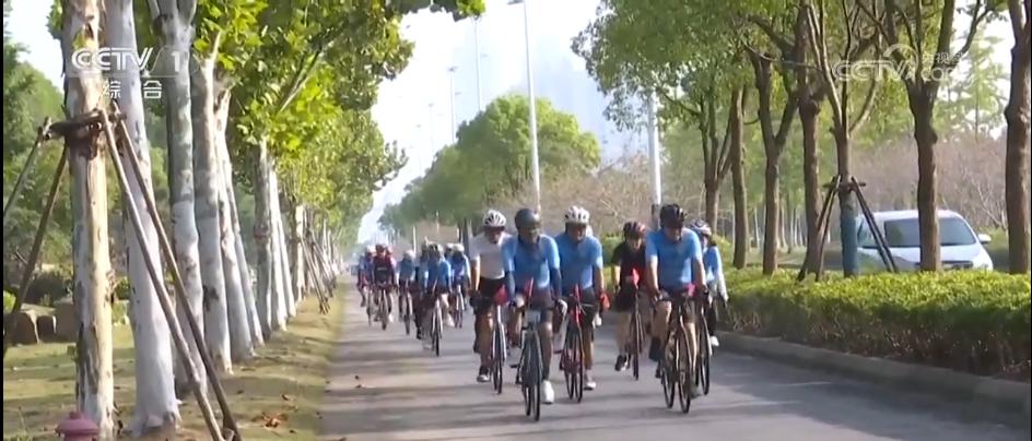 除了打卡快闪店,到户外来一场骑行也是假期里不错的选择。在江苏启东,骑行爱好者们身着专业骑行服,穿梭于城市之间,一边锻炼一边欣赏沿途美丽的秋景。