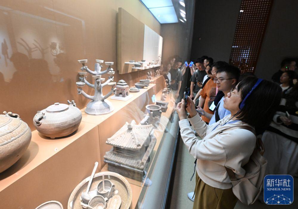 ↑ 10月6日,游客在长沙简牍博物馆参观。新华社记者 陈振海 摄