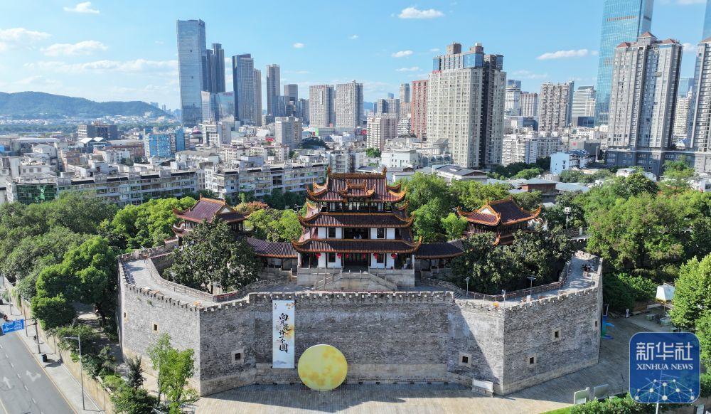 ↑ 10月6日,游客在湖南省长沙市天心阁景区游玩(无人机照片)。新华社记者 陈振海 摄