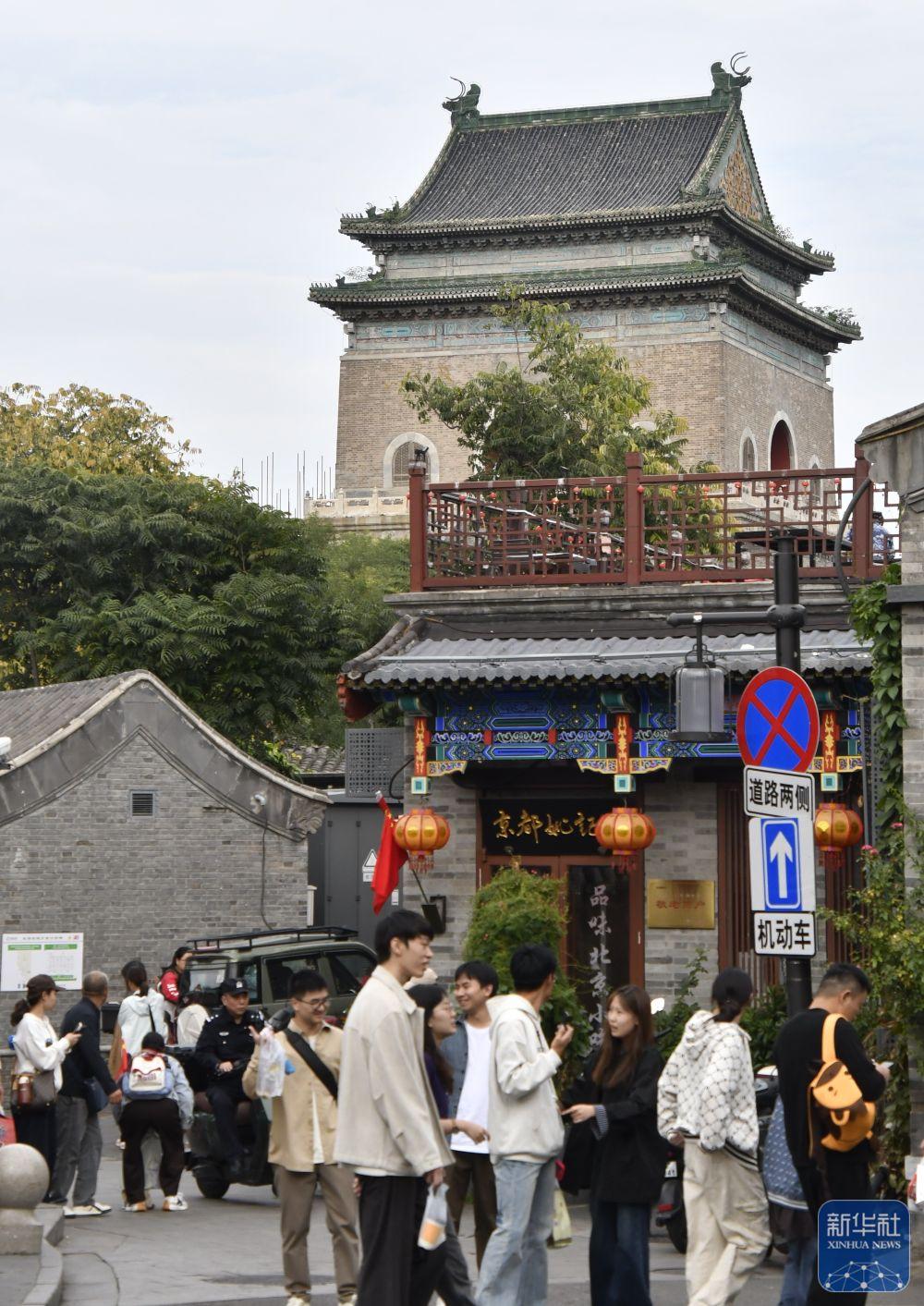 ↑ 10月6日,游客游览北京钟鼓楼附近的小街巷。新华社记者 李欣 摄