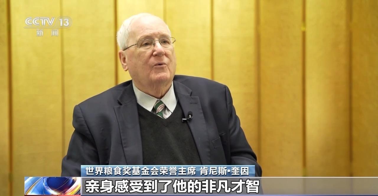 世界粮食奖基金会荣誉主席 肯尼思·奎因:2004年,我们将世界粮食奖授予了袁隆平教授。我见到他,亲身感受到了他的非凡才智。