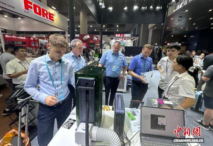 10月16日,第138届广交会继续在广州举行。图为境外采购商正在了解中国企业展出的激光打标机。中新社记者 程景伟 摄