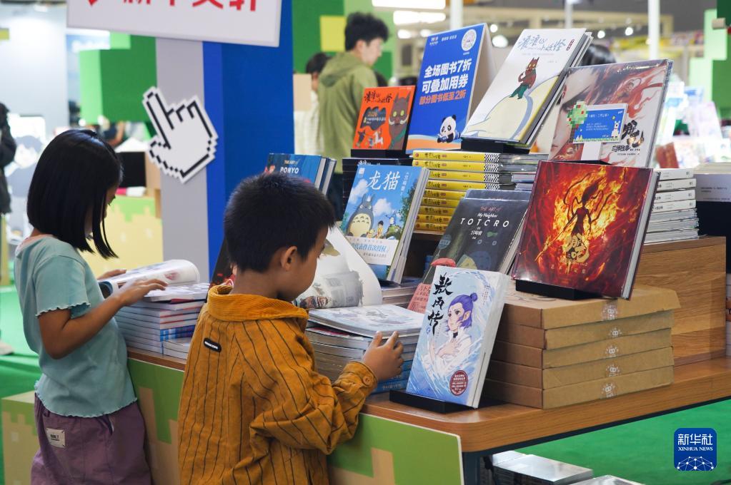 10月17日,两名小朋友在2025天府书展现场阅读图书。