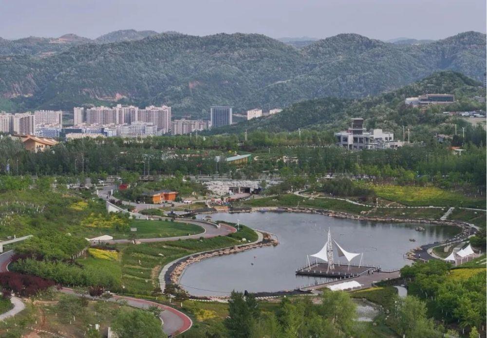 无人机视角下的延安满眼翠绿。新华社记者 张博文 摄