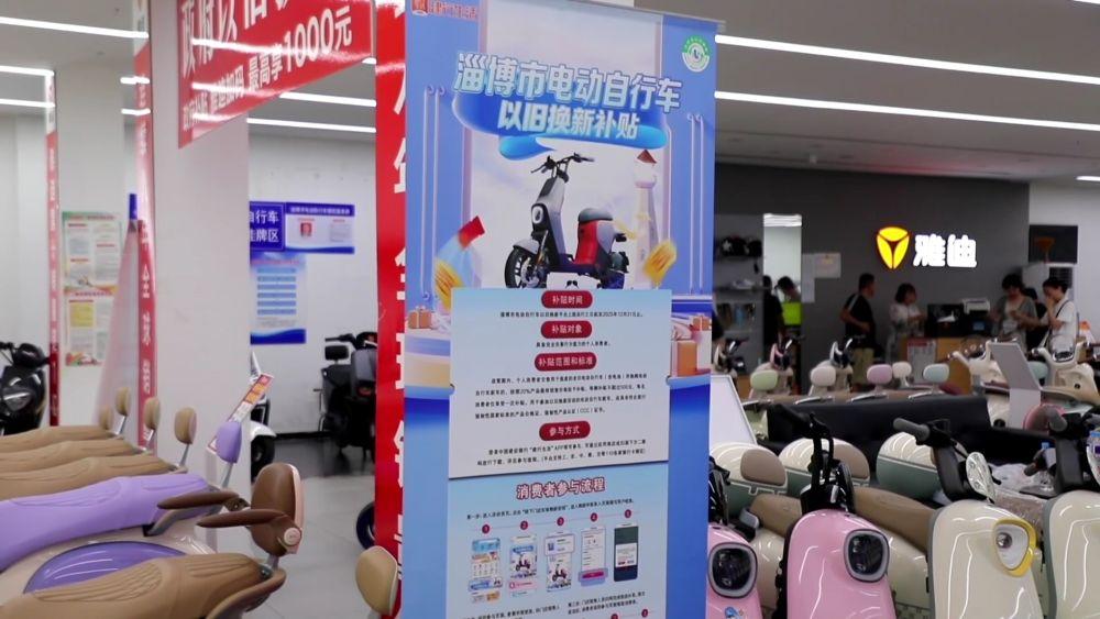 同时,淄博市还积极利用家电等消费品以旧换新政策,开展一系列促消费活动,推动消费市场持续升温。当地对“以旧换新”的电动自行车消费者,按照产品最终销售价格的20%给予补贴,每辆最高补贴500元。