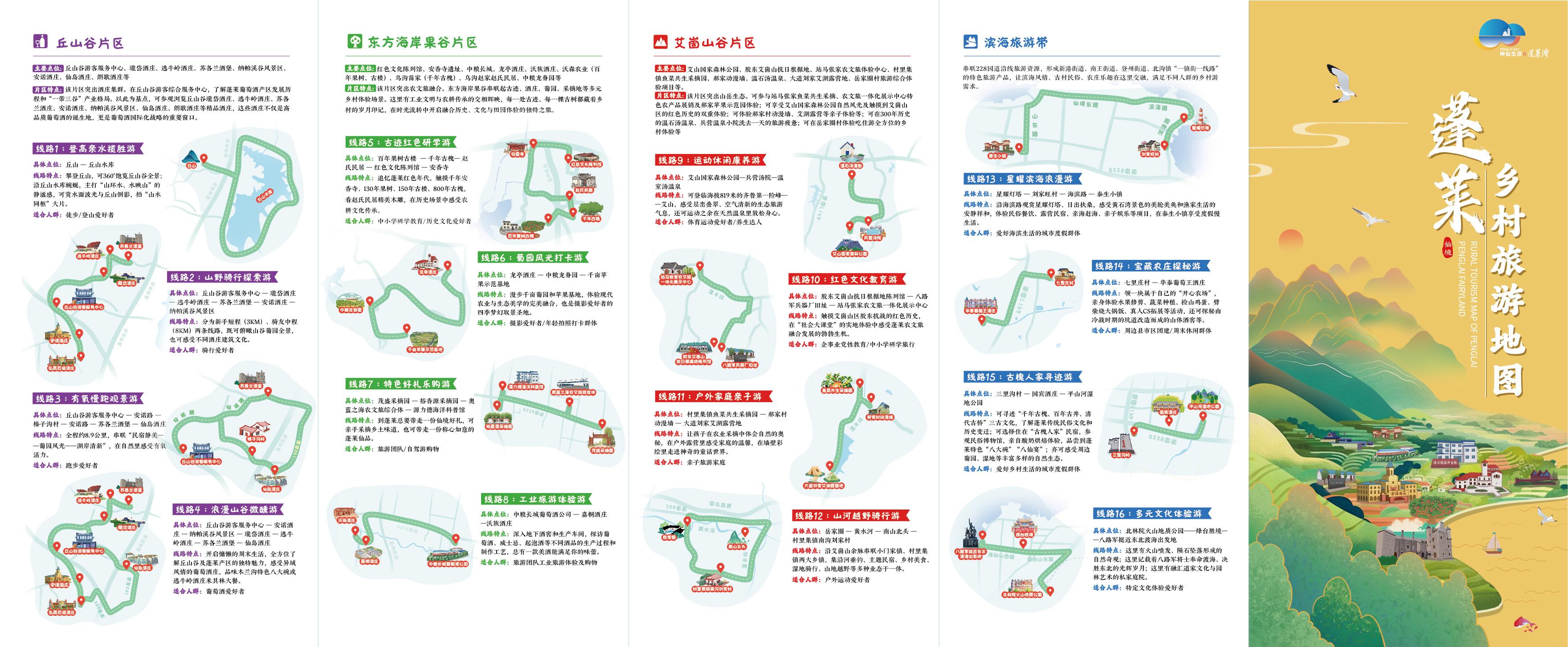 16条乡村线路覆盖“一带三谷”,四大片区各有特色。围绕蓬莱“一带三谷”(滨海旅游带、丘山谷、东方海岸果谷、艾崮山谷)资源,蓬莱推出四大乡村旅游片区16条主题线路,满足多元需求: