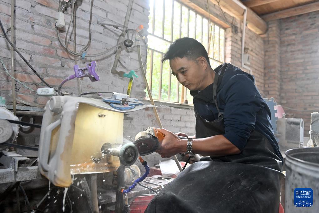 广西龙胜各族自治县是鸡血玉的重要产地,该县三门镇拥有近50家玉器加工家庭作坊,帮助当地群众实现家门口就业。