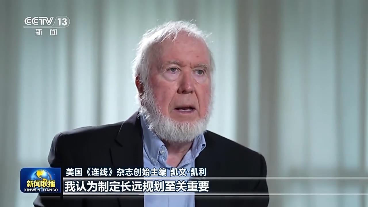 美国《连线》杂志创始主编 凯文·凯利:我认为制定长远规划至关重要,如果只顾眼前,根本不可能成就伟大事业。因此我很赞同中国进行五年规划,眼光越高远,心态就越积极。中国在人工智能、生物科技等领域不断发展进步,正引领全球绿色转型,这对中国、对世界来说都是好事。