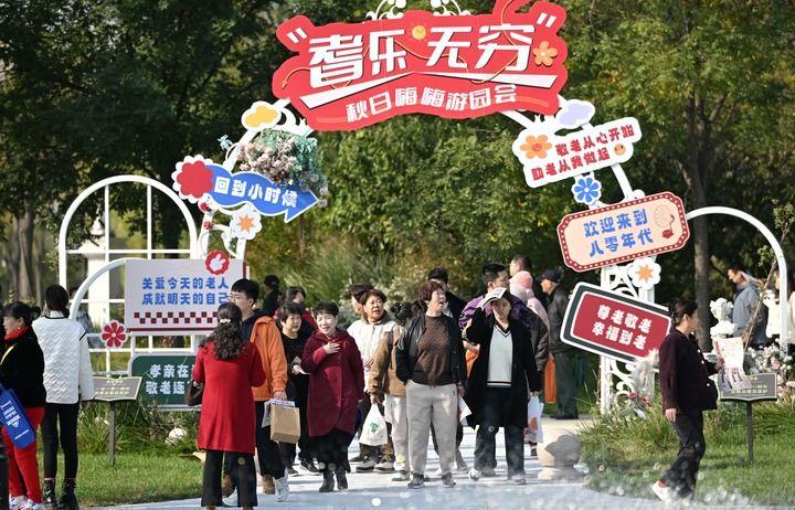 2025年10月22日,人们在天津市北辰区第二届银龄幸福月活动现场游园。新华社记者 李然 摄