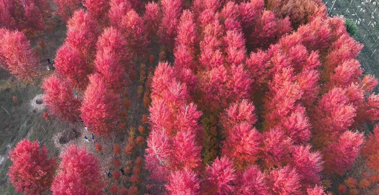这里还多了一片红色枫叶林