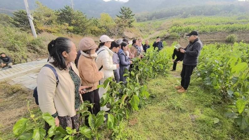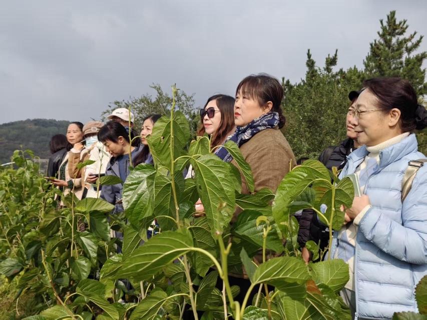在企业2600多亩生态种植园区,采风团探访了杜仲园、矮化桑园、玫瑰园及金银花种植区,桑树经冬季剪枝重育的特殊技术,造就了叶片肥大、品质优良的特性,山间清风裹挟着药草香气,让成员们深切感受生态产业的独特魅力。园区内“绿水青山就是金山银山”的醒目标语,正是企业发展理念的生动写照。