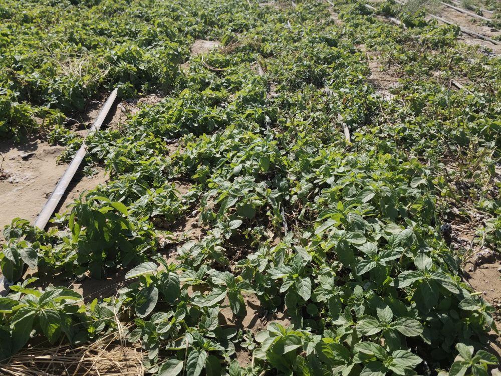 在距于田县城35公里的万花园沙产业实验基地,空气中飘散着阵阵中草药的清香。这片沙漠边缘的土地上如今种植了上千亩中药材。淡紫色的黄芩、翠绿的薄荷,在阳光下泛着光。