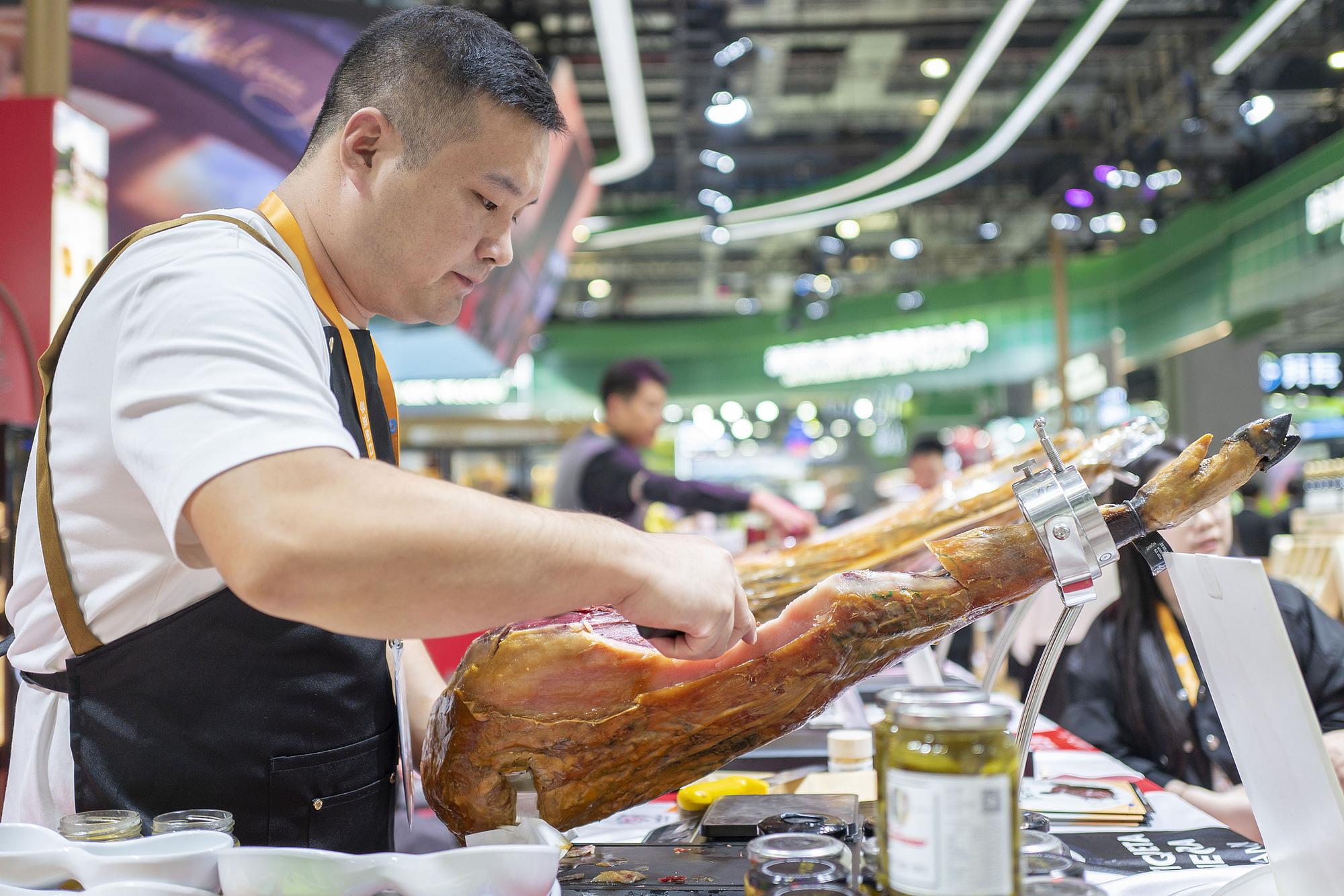 11月5日,第八届中国国际进口博览会在上海拉开帷幕。西班牙火腿、东南亚热带水果、新西兰乳品、德国智能清洁设备等齐聚一堂,全球好物与中国市场“双向奔赴”,共绘创新、多元的消费新图景。