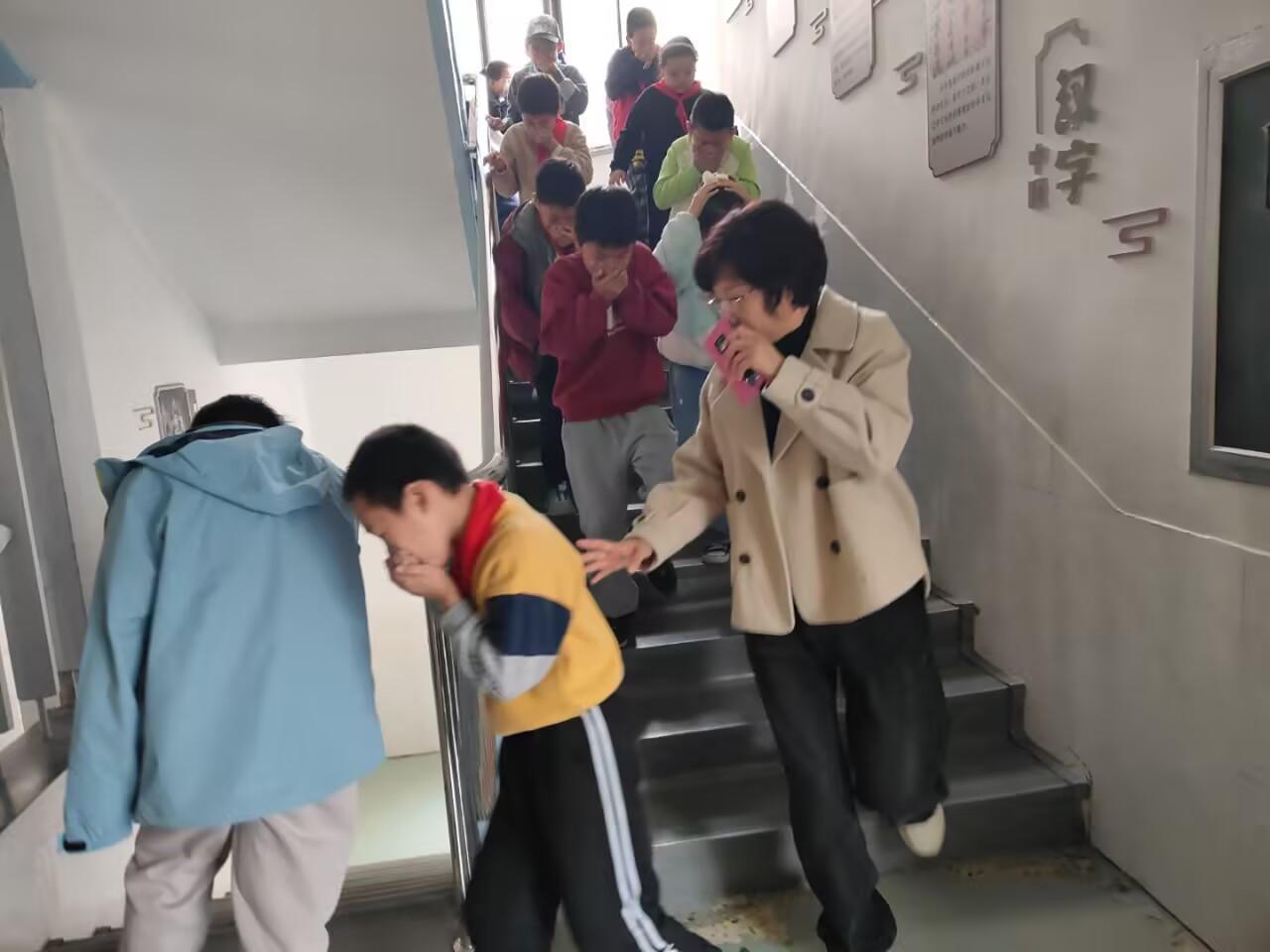 随着一阵急促的消防警报声划破校园的宁静,演练正式拉开帷幕。各楼层、各通道的安全负责老师迅速就位,沉着指挥。正在教室里上课的同学们在老师的带领下,立刻进入紧急状态。大家迅速用湿毛巾、衣物捂住口鼻,弯腰低姿,按照预定的疏散路线,快速、有序地从教学楼撤离。整个过程紧张而不慌乱,密集而不拥挤。师生全部安全撤离到指定的操场集合点,达到了预期的演练效果。