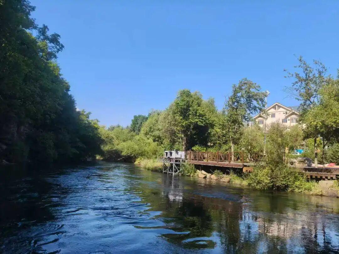 一小时后,我们终于抵达望天鹅景区入口。然而迎接我们的并非想象中的飞瀑与绿荫,而是紧闭的铁门上悬着一块醒目的告示:“暂停营业”,且细看落款,已停业四年。我们面面相觑,一时无声,唯有山风掠过车顶,仿佛时光发出的轻轻叹息。姐姐苦笑一声,提议既来之则安之,不妨欣赏周边风光。小妹补充了一句,“求不得也算是我们旅途的一部分呢!没有遗憾,哪来的圆满?”于是车队再次启动,沿江寻觅那份意外之喜。