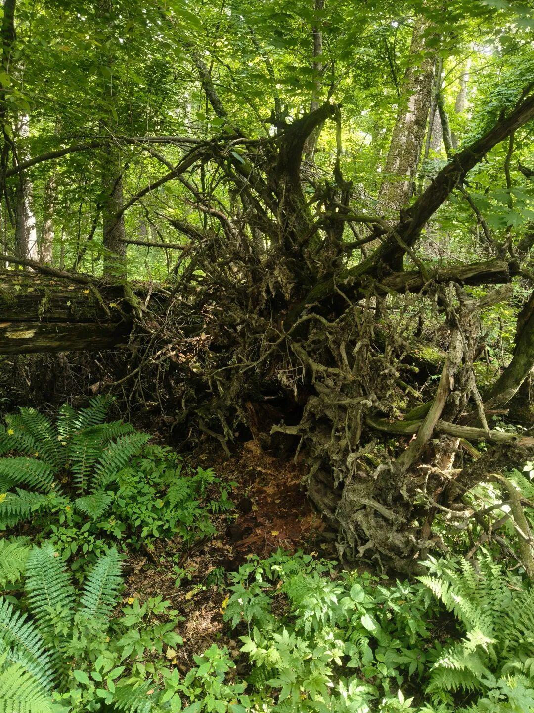 林间处处可见生命轮回:老树倒地化为新树的养料;嫩芽从腐木中探出,倔强地向阳生长。越往深处,路径越幽邃,手机信号渐渐消失,只听到脚步声、呼吸声与不知名的鸟鸣在林中空寂回响。我紧随队伍,突然明白古人为何称此为“神山”——于此,人不过是渺小过客,唯有时间浩瀚如海。而那天池,高踞于这时间之海的顶端,想必更是集千万年光阴于一瞬,静默如谜。我们穿行在这片古老的森林中,仿佛正一步步走向时间的源头,去赴一场与永恒之镜的约会。