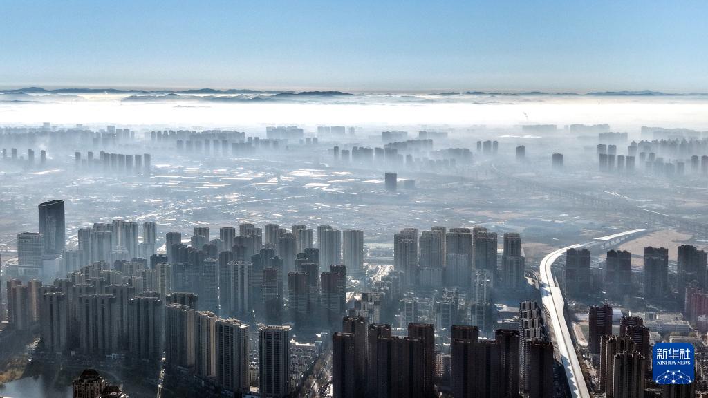11月13日,辽宁省沈阳市高楼大厦在飘缈云雾中若隐若现,仿如“幻城”(无人机照片)。