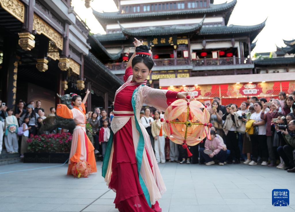 11月14日,来自浙江的非遗滚灯展演在豫园商城中心广场举行。