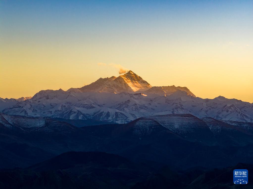 11月13日黄昏在定日县拍摄的珠穆朗玛峰(无人机照片)。