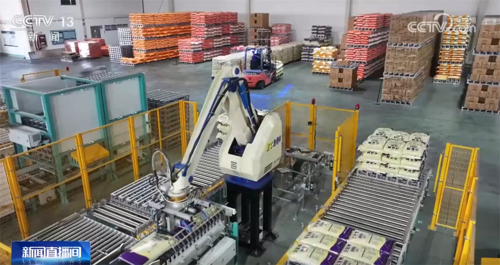 走进这家企业的大米加工车间,各条全自动化生产线高速运转,清理、砻谷、碾米、抛光等步骤有序进行,加工好的大米经过全自动真空低氧包装机,再经打包称重、抽真空、金属探测等,装袋入箱输送到成品仓库,数台高大的码垛机器人灵活运行,将刚下线的一袋袋大米码放整齐,全自动化的设备既能提高加工过程的质量稳定性,也能实时监测加工过程,进一步保障大米加工质量。
