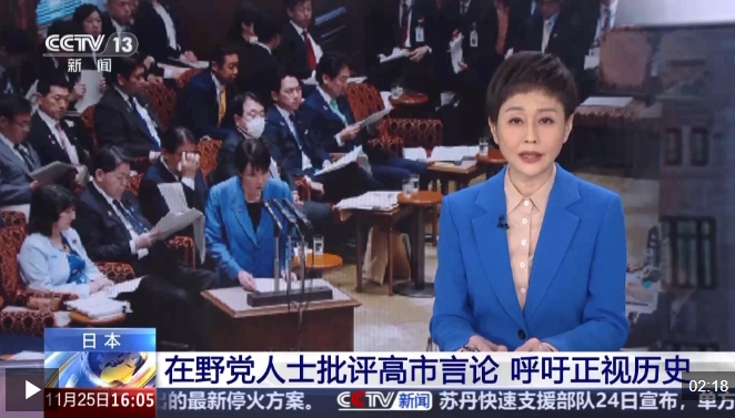 日本社民党全国联合常任干事 山城博治:我们大家都很气愤,把不必要的战争主动招来,把本不该发生的事情引来,把自己拖入战场。作为一个拥有和平宪法的国家,这是绝不可能被允许的事情。在1972年日中邦交正常化时,日本承认现在的中国政府是中国唯一的合法政府,明确表示“理解并尊重台湾是中国领土的一部分”,所以这次高市竟然能堂而皇之地说出如此不可能、不可思议的话,我感到非常愤怒。