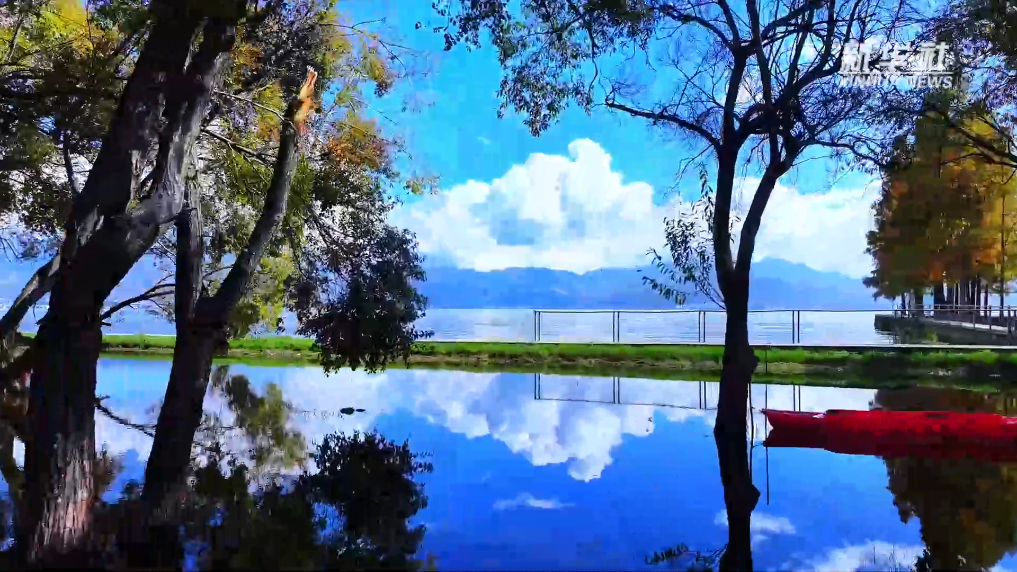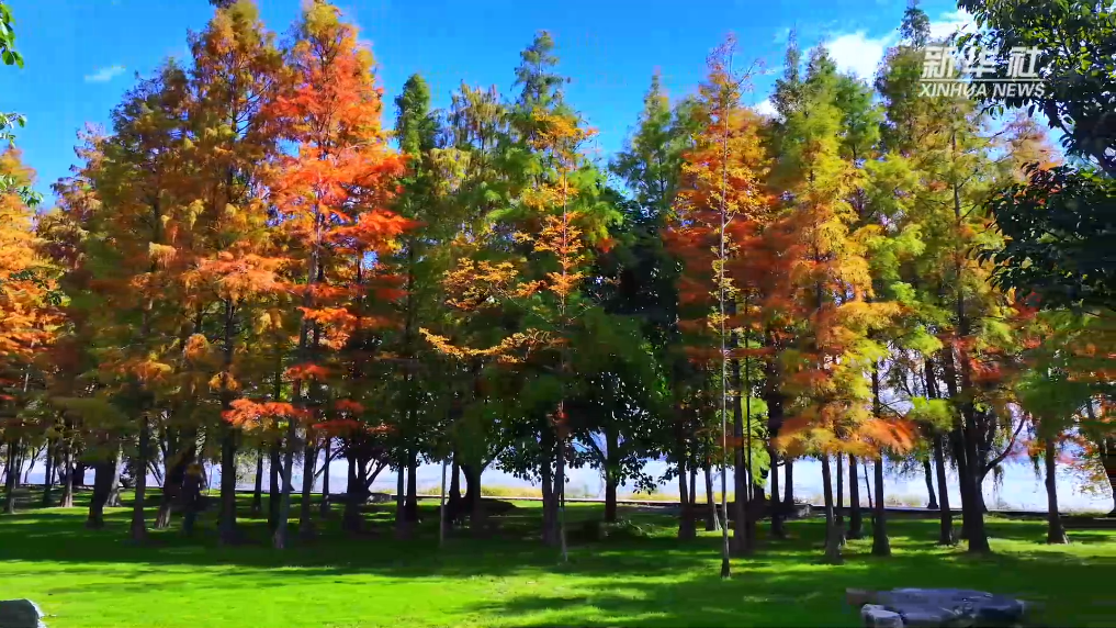 冬日的大理洱海畔,海舌公园色彩斑斓。树木层林尽染,与洱海构成水天相接的唯美画卷。众多游客漫步其间,拍照打卡,记录下这份冬日的静谧与诗意。