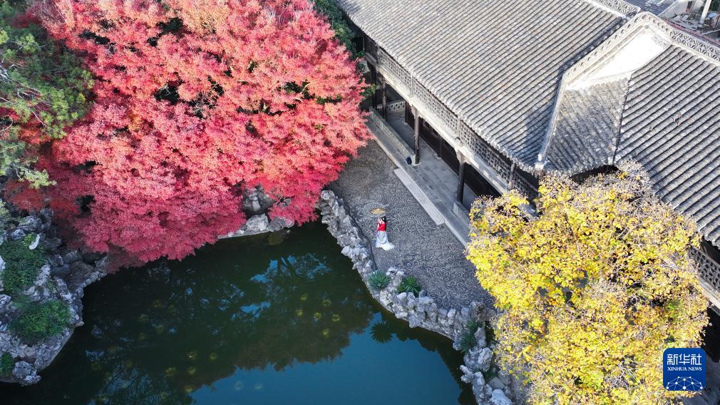 11月28日,游客在江苏扬州何园风景区游玩(无人机照片)。