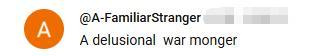 网友@A-FamiliarStranger表示,高市早苗是“一个痴心妄想的战争贩子。”
