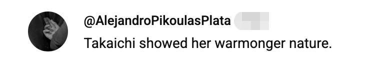 网友@AlejandroPikoulasPlata指出:“高市展现了她的好战本性。”