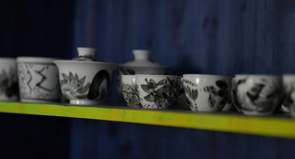 我在研究一些材料,比如化妆土,它不是颜色釉,我也很想找到这种画水墨的感觉。