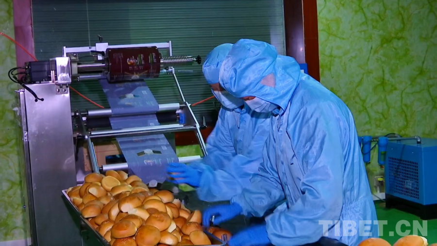 图为曲珍创办的西藏老青稞食品科技开发有限公司生产线